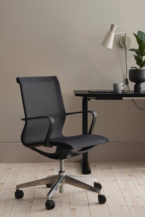 Bekväm och stilren kontorsstol med ett luftigt och slitstarkt meshtyg. Basen är tillverkad i aluminium med hjul. Höjd 89-95,5 cm, bredd 76 cm, längd 60 cm. Sitthöjd 47 cm, sittdjup 45 cm. Lättare montering.