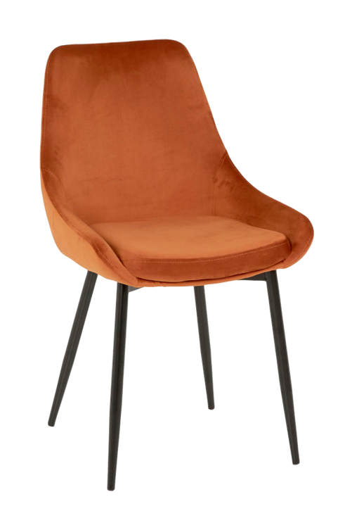 Snygg stol i sammet Information Bredd: 57cm Djup: 48cm Höjd: 83cm Sitthöjd: 48cm Sittdjup: 42cm Delvis monterad, impregnera stolen för att motverka fläckar