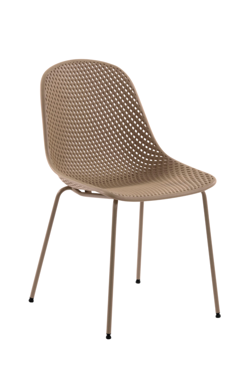 Quinby stol har en beige sits tillverkad av återvunnen plast, placerad på en metallstomme i samma färg. Detta är en mångsidig möbel som du kan använda i många olika rum, som köket, vardagsrummet eller kontoret. Se till att den syns.