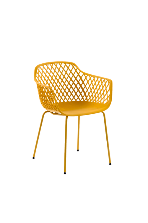 Quinn stol, tillverkad av återvunnen plast, placerad på en metallstomme i samma färg. Denna funktionella stol passar lika bra i gemensamma utrymmen som köket eller vardagsrummet, som i privata utrymmen som din ateljé eller läshörnan. En stol med oändliga möjligheter, i din inomhus- och utomhusmiljö.