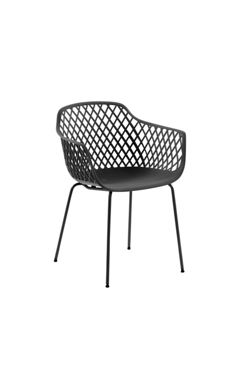 Quinn stol, tillverkad av återvunnen plast, placerad på en metallstomme i samma färg. Denna funktionella stol passar lika bra i gemensamma utrymmen som köket eller vardagsrummet, som i privata utrymmen som din ateljé eller läshörnan. En stol med oändliga möjligheter, i din inomhus- och utomhusmiljö.