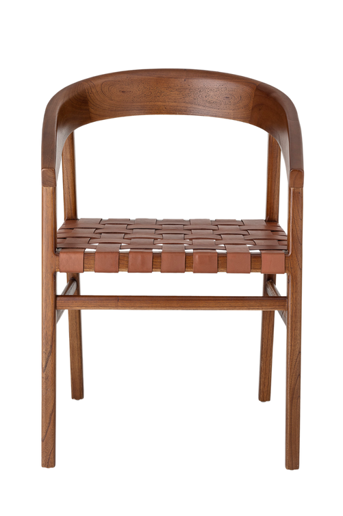 Matstol av massivt cederträ. Med flätad sits av läder. Monterad.