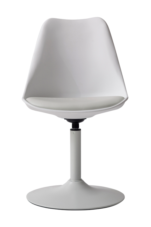 Modern och bekväm designstol med roterings-funktion. Perfekt för din matplats. Material: PP-säte med stoppad PU-kudde, vridbar funktion. Benen är i metall med pulverlackering.