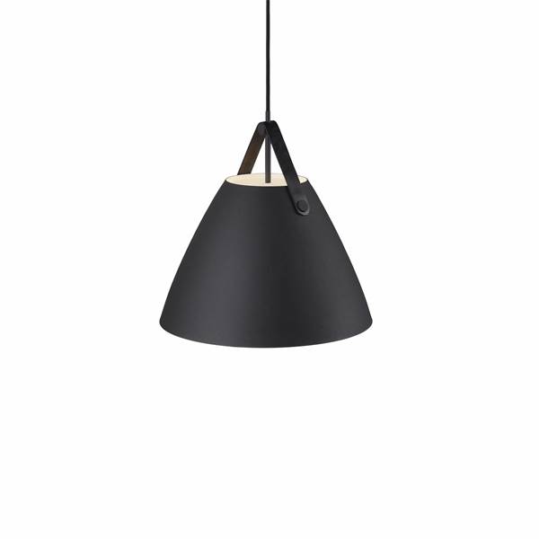 pendellampa, max 40W, e27-sockel, exkl. glödlampa, energiklass a++ till Svart och brun stropp ingår och 3 m sladd. – Svart metallskärm, black leather strap och svart textilsladd