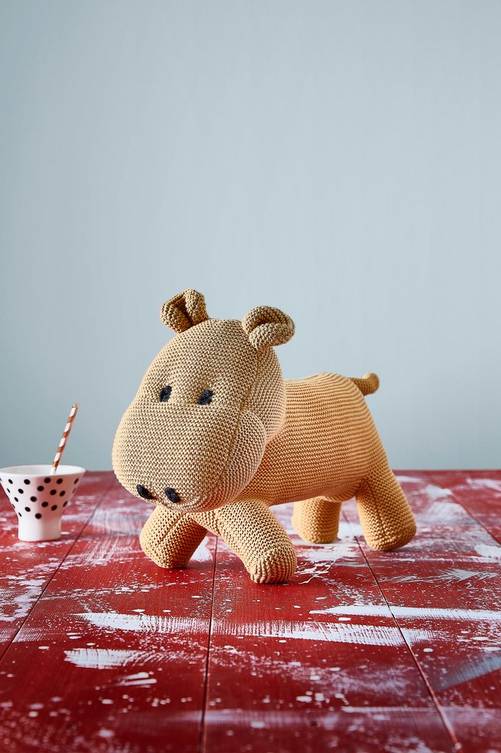 STURE är en stickad flodhäst i ekologisk bomull, stoppad med mjuk polyester. Mjukisdjuret är barnsäker, vilket innebär att alla sömmar är testade och dragsäkra. Dessutom är materialen eld- och flamsäkra samt giftfria. En perfekt ny och gosig bästa vän till ditt barn. Den här produkten är tillverkad av 100% ekologisk bomull och är GOTS-certifierad CU 854502. Det innebär att allt från odling, plockning, beredning och tillverkning av själva produkten, är kontrollerad. Produkten är alltså ansvarsfullt producerad genom hela leverantörskedjan och arbetsvillkoren på odlingar och i fabriker är goda. Material: Utsida i 100% ekologisk bomull, stoppning 100% polyester. Storlek: Höjd 28 cm, längd 36 cm. Skötselråd: Handtvätt.