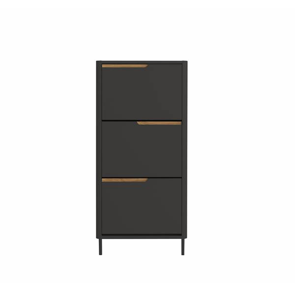 Skoskåp, 3 lådor och Maxbelastning 5 kg. – Gråmålad MDF och ben i grå pulverlackerad metall