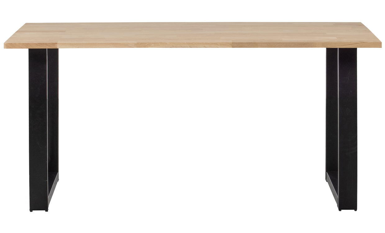 Rejält matbord med plats för hela familjen. Tablo är ett rektangulärt matbord med en skiva i obehandlad ek. Nertill är rejäla u-formade ben som är tillverkade i pulverlackad metall, dessa ger bordet dess stabilitet. Ett tidlöst bord med industriella inslag som passar i de flesta hem. Design & egenskaperStilrent matbord i obehandlad ek.Tillverkat i ek med ben i metall.Har måtten 160×90 cm.Plats för 4-6 personer.Leverans & förpackningLevereras omonteradAntal förpackningar: 3 stFörpackningsmått: 82x11x11 / 82x11x11 / 163,6×93,6×2,4 cm.Vikt: 8,9 / 8,9 / 21,5 kg