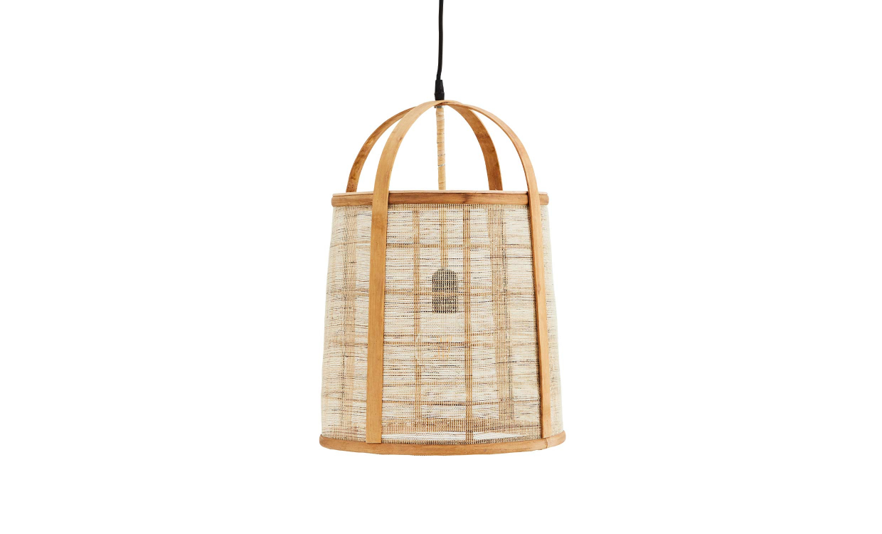 En vacker och härlig taklampa från Madam Stoltz. Lampan har en enkel modell som karaktäriseras av de naturnära materialen. Ljuset från ljuskällan sprider sig fint genom linnet som klär insidan.Design & egenskaperLampan har en utanpåliggande stomme av bambu med en insida klädd i glest linnetyg. 2 m lång sladd med takkopp medföljer.Lamppropp med sladd ingår ej.Sockel E27, max 25W. Ljuskälla ingår ej.