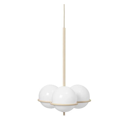 Pulverlackerad järn. Vitt opal glas. E27 sockel. 5 meter textilkabel i matchande färg.