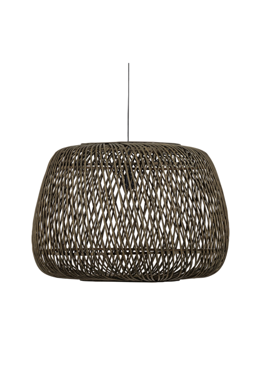 Flätad, modern taklampa av bambu. Denna flätade hänglampan Moza kommer från holländska WOOOD Exclusive-kollektionen. På grund av den öppna strukturen i skärmen sprider lampan ett atmosfäriskt ljus och passar in i flera interiörstilar. På grund av sin storlek är Moza en blickfång i rummet. Diameter 70 cm. Levereras utan ljuskälla. Lampan kan justeras i höjd.