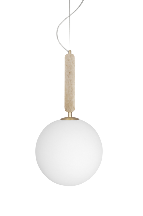 Torrano i vacker solid marmor blir en lyxig inredningsdetalj som verkligen tar plats i rummet. De runda formerna tillsammans med den hårda marmorstenen bildar en spännande kontrast. Denna lampa är gjord i solid marmor, har en glaskupa i vitt opalglas, metalldetaljer i färgen borstad mässing samt en 120 cm lång transparent kabel och vajer samt matchande takkopp i färgen borstad mässing. Design, Patrik Hall. Bredd 30 cm, djup 30 cm och höjd 60 cm. Lamphållare 1xE14. Max 40W. Ljuskälla ingår ej. Takkontakt ingår ej på grund av nytt EU-direktiv. Takkontakt finns att beställa separat. Ojordad.