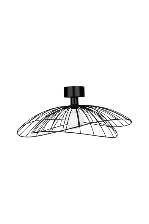 Lampa Ray i metall passar lika fint i taket som på väggen. Den levereras med ett väggfäste och 200 cm transparent kabel för den som önskar att montera fast den på väggen. Lampans höjd 20 cm, Ø 55 cm. Lamphållare E27. Max 60 W. Ljuskälla ingår ej. Design: Patrick Hall. Takkontakt ingår ej på grund av nytt EU-direktiv. De finns att beställa separat. Ojordad
