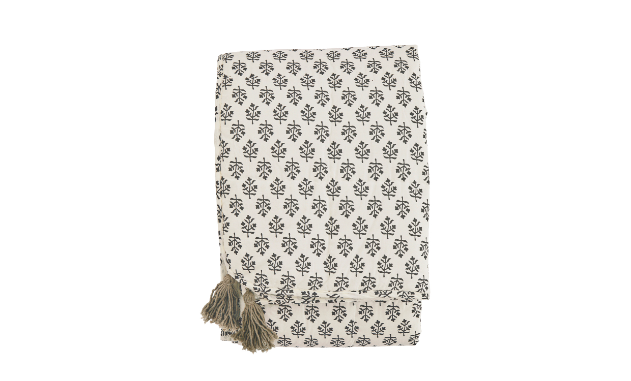 Tassel är en skön pläd med vackert tryckt mönster i detaljerat utförande. Insidan är randig och pläden har fina tofsar i hörnen som ger en bohemisk känsla. Pläden är tillverkad av bomull och har en lätt fyllning av polyester.Design & egenskaperSkön pläd med detaljerat mönster.Vikt: 1,1 kg.Har storleken 140×200 cm.Material & skötselTillverkad av bomull och fylld med polyester.Endast kemtvätt.