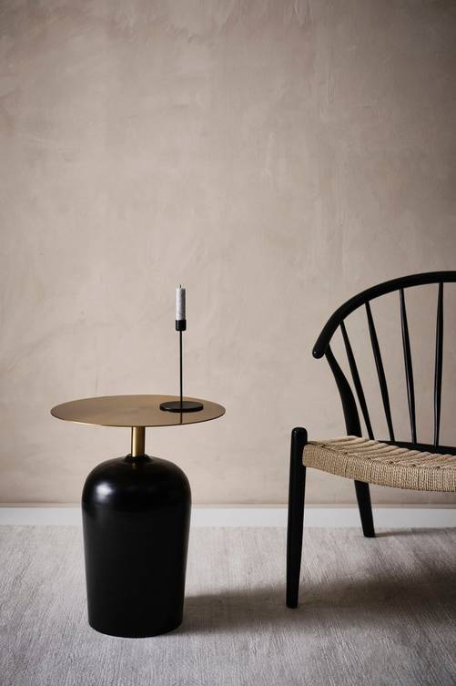 Sidobord av metall med bordsskiva i guldfärgad finish. TORETTA är ett unikt och elegant sidobord som passar in i många rum. Material: Metall. Storlek: Höjd 49 cm, bordsskiva ø 40,5 cm. Skötselråd: Torkas av med lätt fuktad trasa.