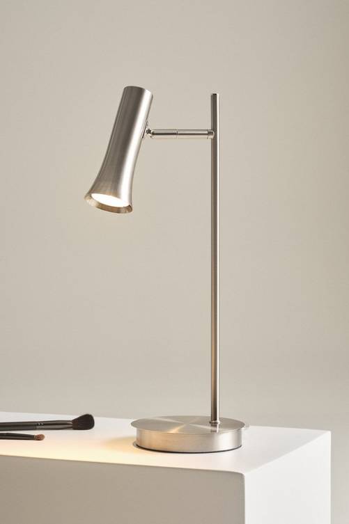 Bordslampa av metall med liten och smidig lampskärm som ger bra läsljus. Lampan är stilren och lättplacerad, perfekt på skrivbordet eller sängbordet. Sladden är transparent. Material: Metall. Storlek: Total höjd 47 cm, bredd 17 cm. Sockel/lampa: 1 st GU10, max 8 w. Ljuskälla medföljer ej. Tips/råd: I serien TORO finns också golvlampa som matchar snyggt.