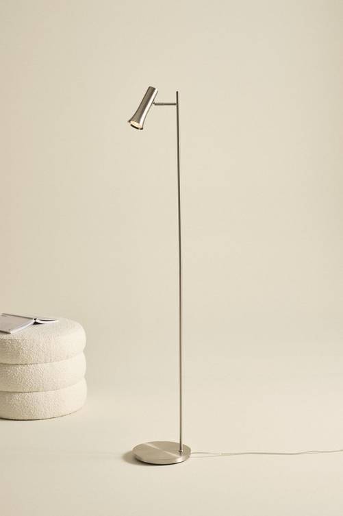 Golvlampa av metall med liten och smidig lampskärm som ger bra läsljus. Lampan är stilren och lättplacerad, perfekt vid läsfåtöljen. Transparent sladd. Material: Metall. Storlek: Total höjd 144 cm, bredd 23 cm. Sockel/lampa: 1 st GU10, max 8 w. Ljuskälla medföljer ej. Tips/råd: I serien TORO finns också bordslampa som matchar snyggt.