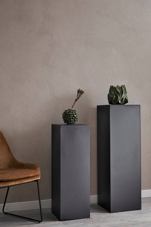 2-pack piedestaler av pulverlackerad metall. Stilrena, enkla och lättplacerade piedestaler som är ihåliga. Den raka formen gör att de passar in i många hem och rum, oavsett stil. Piedestalen gör återtåg efter att ha varit bortglömd ett tag och den är ett utmärkt sätt att lyfta fram fina föremål och gröna växter. Placera en vacker bordlampa på piedestalen och lys upp ett mörkt hörn. Material: Metall. Storlek: Höjd 110 cm, bredd 35 cm, djup 35 cm och höjd 90 cm, bredd 30 cm, djup 30 cm. Skötselråd: Torkas av med lätt fuktad trasa. Tips/råd: Piedestalerna är lätta att flytta och du kan förnya hemma bara genom att möblera om. Ha dem i par eller var för sig.