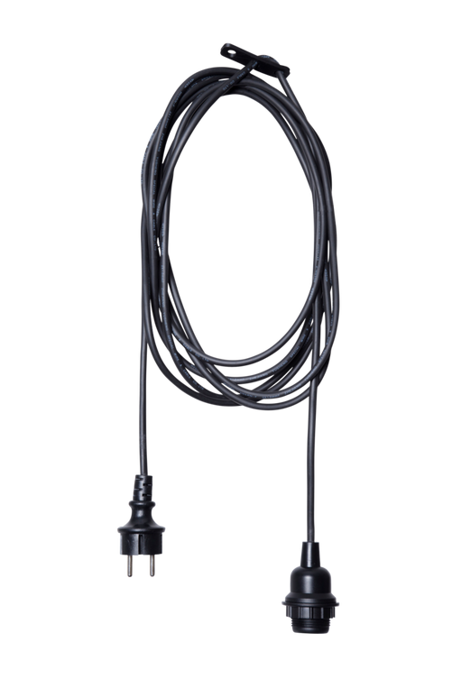 Sladd för utomhusbruk som du kombinerar med en snygg ljuskälla och får en spännande utomhusbelysning. Svart gummikabel. Material: Gummi. Storlek: Sladdlängd 2,5 m. Sockel/lampa: 1 st E27, max 25 w glödlampa eller max 5 w lågenergilampa. Ljuskälla medföljer ej.