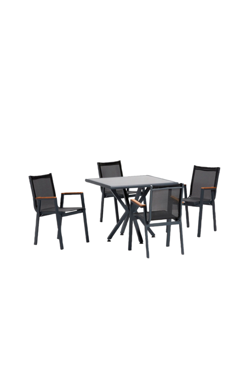 100% aluminium bordets mått: bredd: 90 cm höjd: 90 cm stolens mått: bredd: 57 cm höjd: 63 cm djup: 90 cm