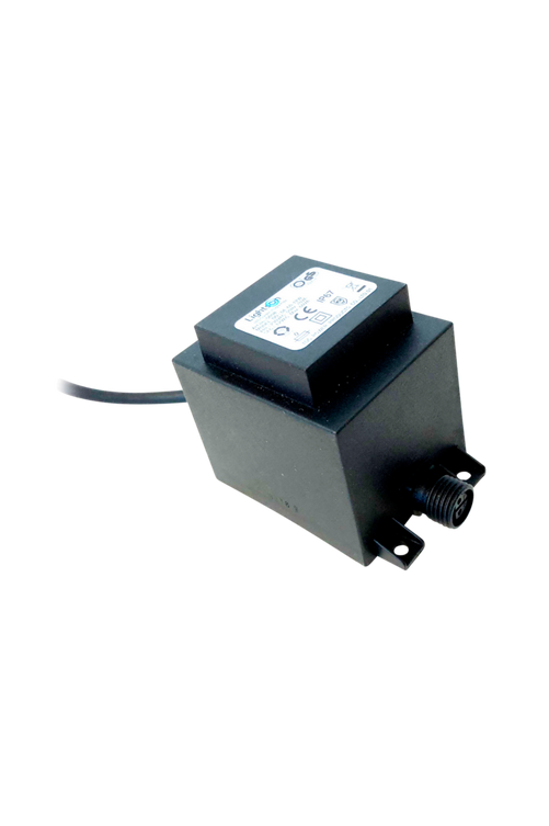 Lamporna i LED Garden Plug & Play-systemet får sin ström genom transformatorn som omvandlar spänningen från vägguttagets 230V till systemets 12V. Välj denna transformator när det sammanlagda antalet watt på lamporna i ditt LED Garden Plug & Play system är max 60W. För optimal livslängd bör transformatorn inte maxbelastas. Lämna gärna 10-15% outnyttjad kapacitet. Transformatorn har ett 12V snabbkopplingsuttag i ena änden och en 2m lång sladd med stickkontakt till nätet i andra änden. – 230-240V/50Hz – 12V AC – 60VA – CE-märkt – IP67