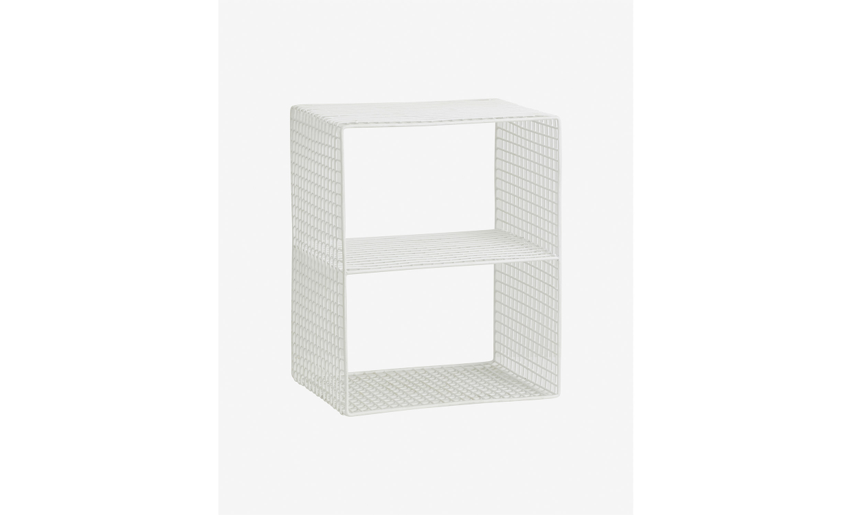 Tuo hylla är tillverkad av järngaller som har en vitmålad yta. Tuo är flexibel och går att använda för många olika ändamål så som bokhylla, förvaringsenhet eller litet sidobord. Notera att miljöbilden visar hyllan i färgen olivgrön.Design & egenskaperStilren hylla från Nordal.Tillverkad av järngaller.Har dimensionerna 40x30x50 cm.Maxvikt per hylla: 15 kg.