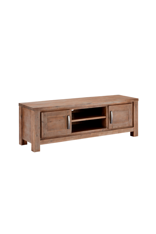Tv-bänk i akacia med två luckor och ett hyllplan Färdig monterad. Mått: B: 160 D: 45 H: 55 Vikt: 38 Benhöjd (cm): 6 Hylltjocklek (mm); 20 Material: massiv Akacia, hylla: MDF med akaciafanér Skötselinstruktioner: Behandla ytan med en naturlig oljebehandling en gång per år 2 års garanti