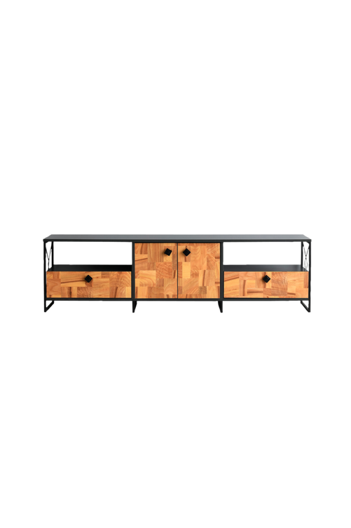 100% SPÅNSKIVA MED MELAMINBELÄGGNING Tjocklek: 18 mm Bredd: 180 cm Höjd: 50 cm Djup: 41 cm Hyllans höjd: 20 cm 2 lådor Flera hyllplan Kan fästas i väggen