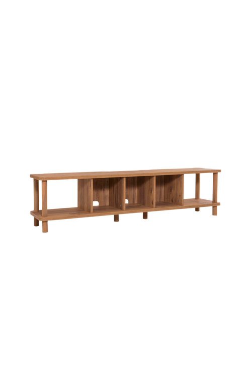 100% SPÅNSKIVA MED MELAMINBELÄGGNING Tjocklek: 2,5 cm Ben & Stolpar: 100% AVENBOK Bredd: 180 cm Höjd: 43,7 cm Djup: 35 cm Benens höjd: 10 cm Hyllans höjd: 28,7 cm Inga verktyg behövs