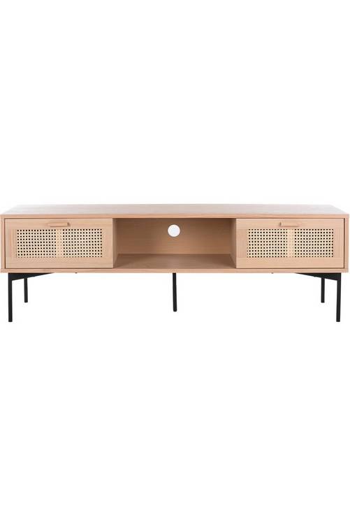 Tv-bänk i lackad ek, rotting och metall med 2 lådor. Softclose på lådor. Levereras omonterad.