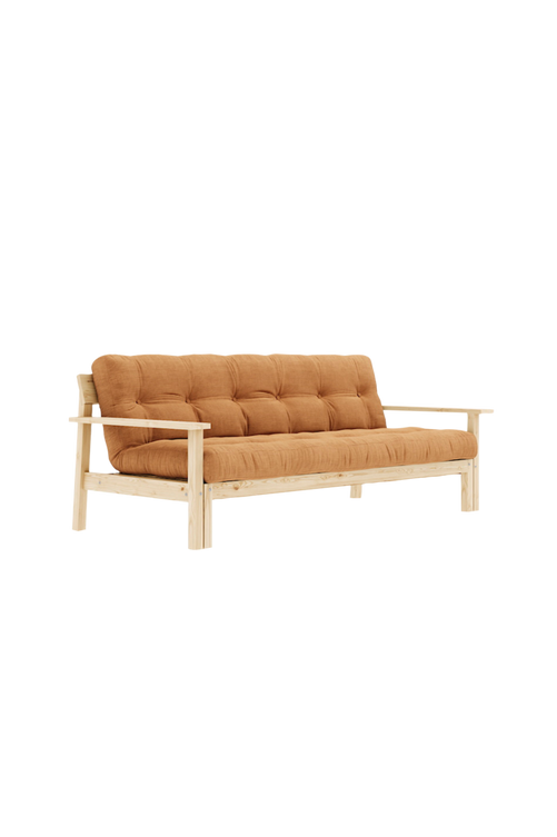 En . Film . Soffa Namnet säger allt: detta är den perfekta soffan för att varva ner och koppla av. Med en enkel rörelse förvandlas den från en elegant, 1950-talsinspirerad soffa av furu till en filmkvällssoffa som bara väntar på att du ska slå dig ner, luta dig tillbaka och koppla av. Det breda armstödet fungerar som ett litet inbyggt sidobord och gör att du har allt du behöver inom räckhåll. Behöver du extra sovplats? Litet hus eller en mindre lägenhet? Vi har vad du behöver. Soffan Unwind är en 3-sitssoffa, filmsoffa och en säng. Byt bara position och njut av en god natts sömn.
