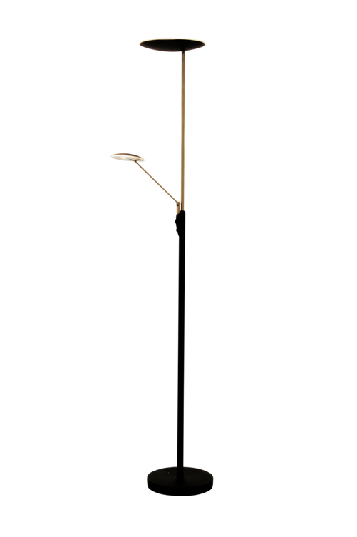 Uplight golv-lampa i metall. 2 dimmare på lampan. LED-ljuskällor är integrerade.