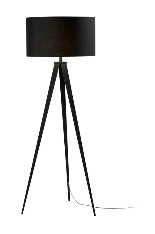 Golvlampa med stativben av svart metall. Lampskärm av svart textil. Passar glödlampa E27 (medföljer ej). Höjd 157 cm Bredd 50 cm Djup 50 cm