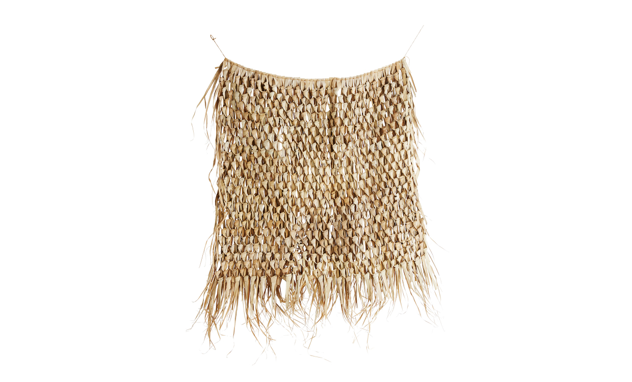 Det här är en vacker prydnad som utstrålar en naturnära och tropisk känsla. Väggdekorationen är tillverkad av palmblad och hängs upp med en träpinne. Prydnaden har ett fint flätat mönster och passar fint i vardagsrum eller sovrum.Design & egenskaperVacker väggdekoration med tropisk känsla.Har en bredd på 120 cm.Material & skötselTillverkad av palmblad och jute.Då möbeln är tillverkad av naturmaterial kan färg och form variera något.Leverans & förpackningLevereras monterad.Antal förpackningar: 1 stVikt: 1,1 kg