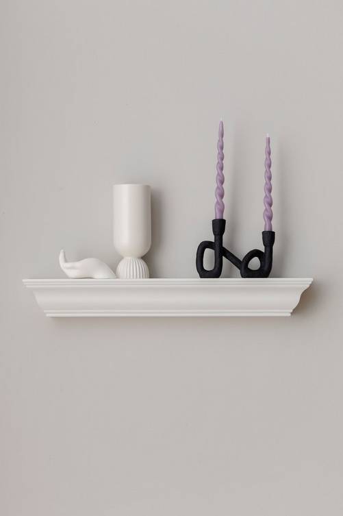 av målad MDF. Skruvas fast på väggen. Längd 76 cm. Höjd 10 cm. Djup 12,5 cm.
