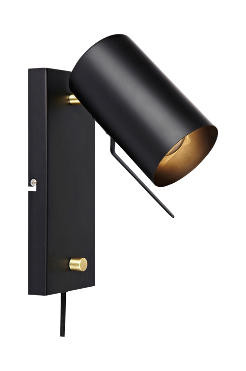 Carrie vägglampa i metall från Markslöjd. Strömbrytare/dimmer finns på väggplattan. GU10 lamphållare, 2 meter textilsladd med väggkontakt. Längd 9,5 bredd 20 höjd 26 cm.