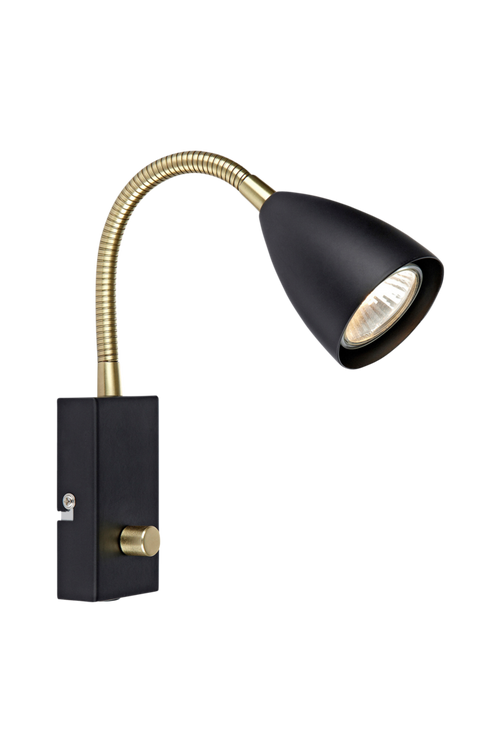 Ciro vägglampa från Markslöjd. Vit metall med flexarm i mässing. Strömbrytare/dimmer på väggplattan. GU10 lamphållare, 2 meter sladd. Längd 6,5 bredd 20 höjd 26 cm.