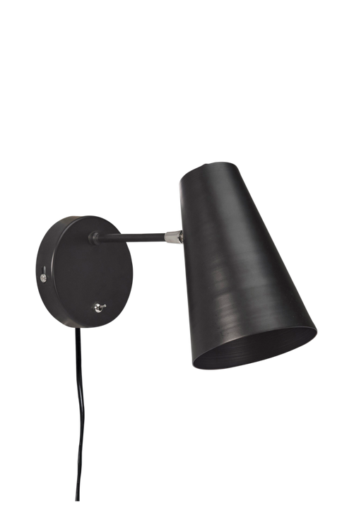 Vägglampa Cornet i metall med justerbar skärm. Strömbrytare på väggplattan. 1,4 meter plastsladd. Väggavstånd ca 27-35 cm. Skärmens diameter nedtill 13 cm och höjd 20 cm. En stilren form som står sig över tid. Ljuskälla ingår ej.