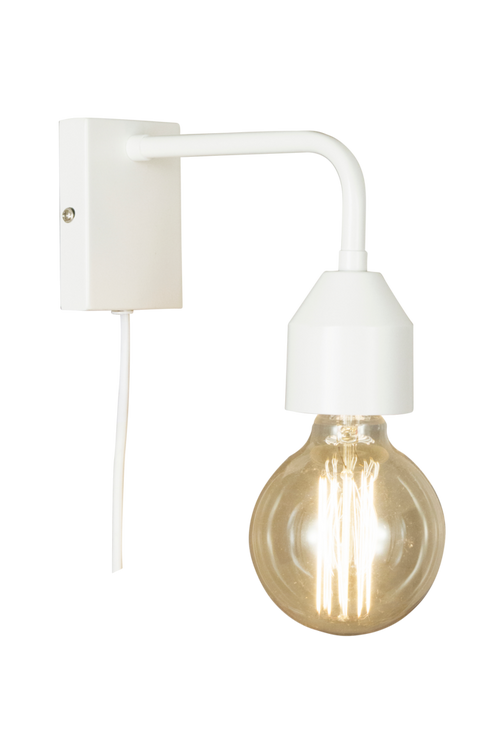 FLYNN metallvägglampa och på / av-brytare på tråd. Vi rekommenderar en stor dekorativ glödlampa med E27-bas.