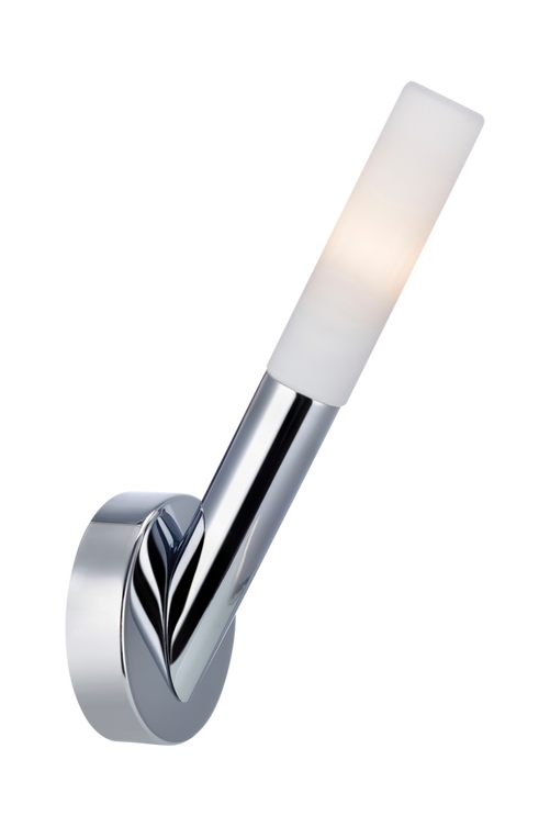 Vägglampa Glow från Markslöjd. Godkänd för badrumsmiljö. Kromad metall med frostat glas. För fast, jordad installation.