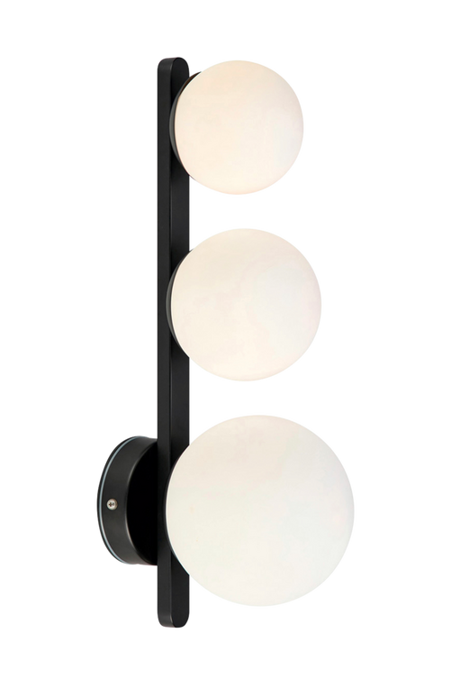 Vägglampa Puro från Markslöjd har en stomme i metall och tre skärmar i glas. Den är godkänd för badrum då den har klass IP44. Fast installation. Ljuskällor ingår ej.