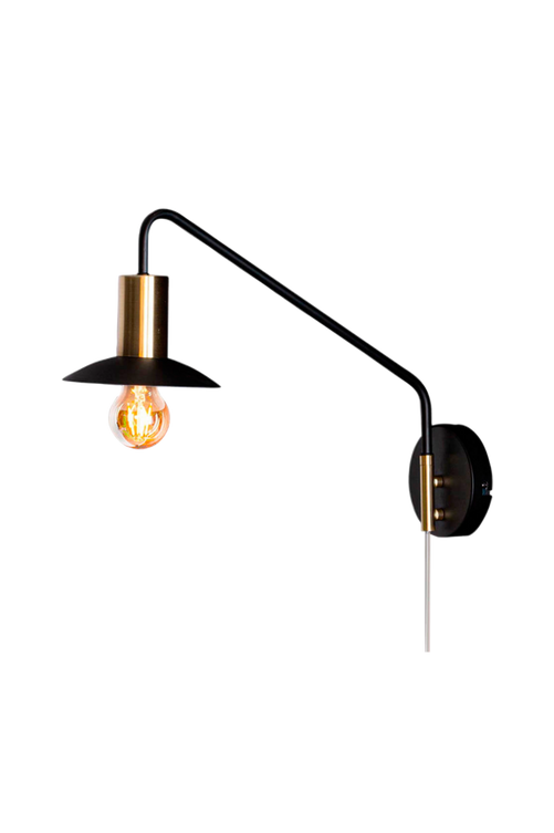 Quinn vägglampa passar i de flesta rum, särskilt om du har en inredning som grundar sig i den grafiska stilen. Quinn vägglampa kommer i två olika modeller där den mindre varianten har en höjd på 35 cm och bredd på 48 cm. Den är roterbar vid väggfästet, allt för att skapa ett större användningsområde. Sladden är 120 cm lång, strömbrytaren är placerad på kabeln och till denna modell rekommenderar vi en ljuskälla i färgen amber. Vägglampan finns också i en större variant. Ljuskälla ingår ej.