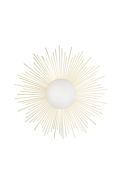 Soleil är inspirerad av solspeglar och Louis XIV. Denna lampa i borstad metall samt glas går utmärkt att använda antingen som vägglampa med medföljande transparenta sladd (200 cm), eller som plafond i taket. Ø 56 cm, djup 11 cm. Lamphållare G9. Max 28 W. Ljuskälla ingår ej. Design: Erika NorénTakkontakt ingår ej på grund av nytt EU direktiv. De finns att beställa separat.