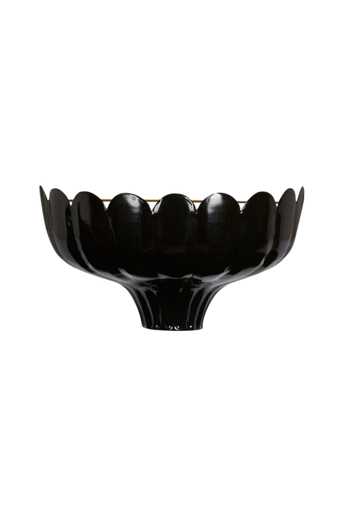 Vägglampa Wells uplight är handgjord av metall. Inspirerad av en blomma ger den här lampan en romantisk stil till hemmet. Den guldfärgade insidan sprider ett varmt sken i rummet. Lampan är försedd med en svart plastsladd som är 180 cm. Strömbrytaren sitter ca 30 cm från skärmen. Vägglampan är gjord för ljuskällor med E27-sockel och som har en maxeffekt på 25W. Höjd 20 cm, bredd 36 cm, djup 18 cm.
