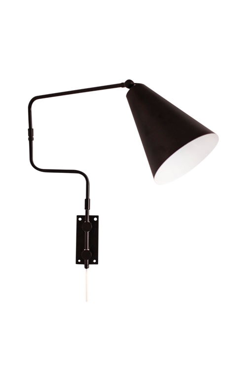 Yukon är en modern och minimalistisk vägglampa. Den stilrena lampan i metall har en enkel design där fokus ligger på det vridbara lamphuvudet. Vägglampan reflekterar ett behagligt ljus och fungerar perfekt som ljuskälla intill sängen. Vägglampan fästs med fyra skruvar i väggen och har en lampsladd på 2 meter. Till Yukon behöver du en ljuskälla med E27 sockel, vi rekommenderar att du går med en transparant LED lampa till denna modell. Max 25W. Höjd 43,5 cm. Skärm mått: 16 cm i diameter. Ljuskälla ingår inte.