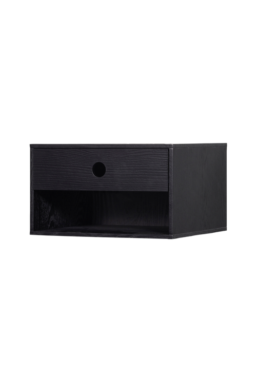 – sängbord med svävande intryck – tillverkat av lackerad MDF – enkelt väggmonteringsmaterial medföljer – H 20 cm x B 34 cm x D 30 cm det vägghängda sängbordet Nancy ingår i en kollektion från det nederländska inredningsmärket WOOOD och är diskret stilrent tack vare sin enkla design. Användningen av lackerad MDF gör att sängbordet utstrålar ett lugn och lätt smälter in i stilen i ditt sovrum. material MDF bildas av pressade träfibrer som binds samman med harts under högt tryck. Som resultat får detta material en mycket slät yta. MDF i våra kollektioner används i de bakre panelerna på en del av förvaringsmöblerna. MDF utgör grunden för valnöts- eller ekfaner. Varje fanerad MDF-skiva får en transparent skyddsbeläggning i vår egen fabrik. mått – höjd: 20 cm – bredd: 34 cm – djup: 30 cm – lådfront: H 9 x B 32 cm – lådans inre mått: H 6,5 x B 30 x D 24 cm – lådans hål: Ø 3 cm – öppet fack: H 9 x B 32 x D 28 cm – upphängningssystem: ribba H 4 x B 31,5 x D 1,5 cm, 2+1 skruvar och 2+1 universalpluggar medföljer. – maximal belastning: 5 kg per låda/fack skötsel fördelen med pressat panelmaterial är att det inte bildar flisor eller blir skevt. Materialet är dock mycket känslig för fukt och värme på grund av att det är mycket absorberande. Det leder till att MDF expanderar och sedan inte återfår sitt ursprungliga skick. leverans produkten levereras i ett paket och är lätt att montera med hjälp av den bifogade monteringsanvisningen.