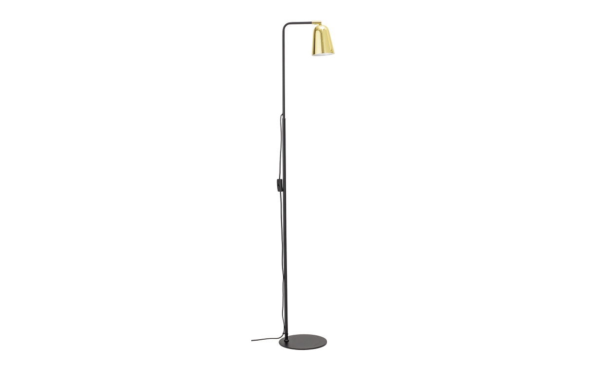 Vanessa är en modern golvlampa som utstrålar en glans med sin guldfärgade lampskärm. Lampan är tillverkad i järn och har en böjbar arm som gör Vanessa perfekt som läslampa.Design & egenskaperModern golvlampa med glansiga detaljer.Tillverkad av järn.Lampskärmens storlek: 10,5×13 cm.Textilsladd 2 m i svart med strömbrytare.E14. Max 20W. CE-märkt, IP20. Ljuskälla ingår ej.