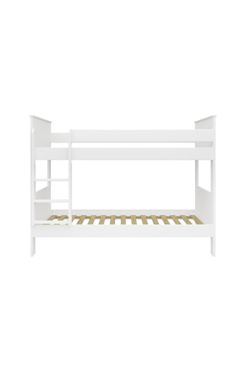 Våningssäng med stege (kan placeras båda L + R) tillverkad i lackerad MDF med massiva tallplattor. Madrassstorlek: 90×200 cm (madrass ingår inte). Enkel självmontering.