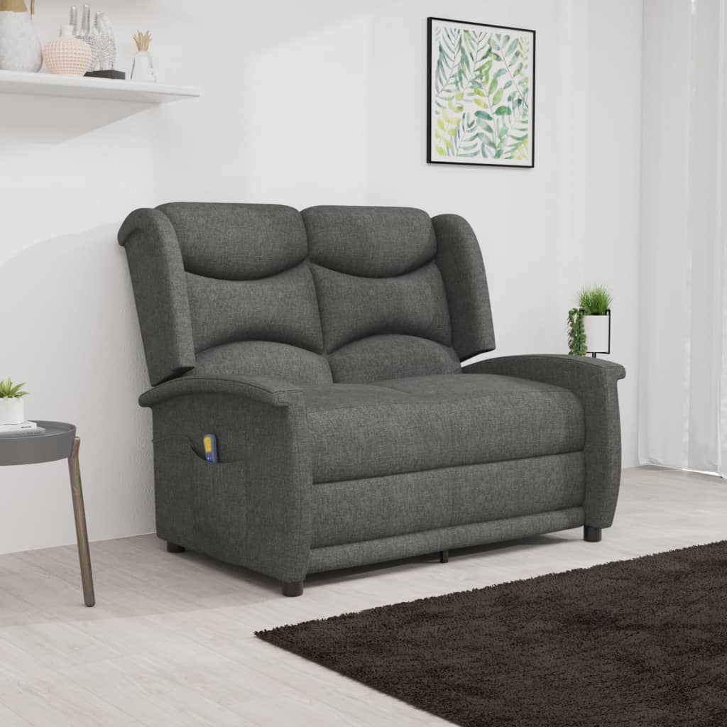 Den här 2-sits massagestolen är en utmärkt sittlösning för ditt vardagsrum. Fåtöljen är tjockt stoppad med och klädd i starkt tyg. Fåtöljen har en stadig metallram och är oerhört bekväm och hållbar. Denna elektriska massagestol har 6 massagepunkter för rygg, säte och ben. Den medföljande handkontrollen låter dig välja olika massageprogram. Sitsen kan även värmas upp för extra avkoppling med ett knapptryck. Ryggstödet är justerbart bakåt, och fotstödet kan justeras uppåt. Denna position gör att du kan lägga dig bekvämt. Upplev en härlig stund i vår 2-sits massagefåtölj!