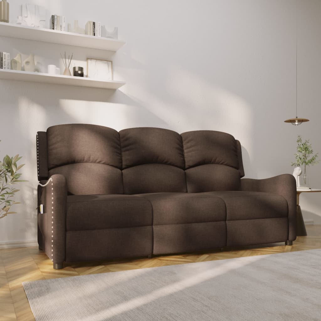 Den här 3-sits massagestolen är en utmärkt sittlösning för ditt vardagsrum. Reclinerfåtöljen är tjockt vadderad och klädd i starkt tyg. Den är tillverkad av en robust ram av metall och trä och är mycket bekväm och hållbar. Den här elektriska massagestolen har 6 massagepunkter för rygg, sits och ben som sänder ut avslappnande vibrationer. Med den medföljande handkontrollen kan du välja olika massageprogram. Sätet kan också värmas upp för extra avkoppling med en enda knapptryckning. Ryggstödet kan justeras bakåt och fotstödet kan justeras uppåt. Denna position gör det möjligt för dig att ligga bekvämt. Upplev en härlig stund i vår 3-sits massagefåtölj!