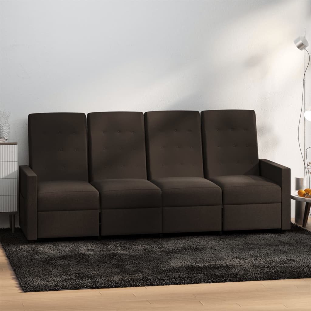 Den här 4-sits reclinerfåtöljen är en utmärkt sittlösning för ditt vardagsrum. Sittdelen är tjockt vadderad och klädd i starkt tyg. Reclinerfåtöljen är tillverkad av en robust ram av metall och trä och är mycket bekväm och hållbar. Eftersom ryggstödet och fotstödet dessutom är justerbara kan du alltid hitta den mest bekväma positionen. Upplev en härlig stund i vår reclinerfåtölj!